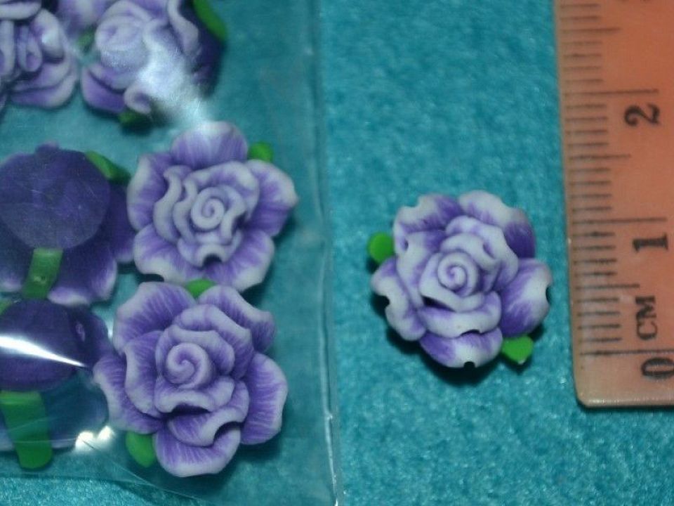 Намистини з полімерної глини. Форма: об'ємні троянда. Розмір намистини: 15мм, отвір: 1 * 1.5 мм. Ціна вказана за упаковку: 20шт. Квітку можна нанизати на основу для браслета або приклеїти на основу для кілець. Так як це намистини ручної роботи, то розмір може варіюватися + -1 мм