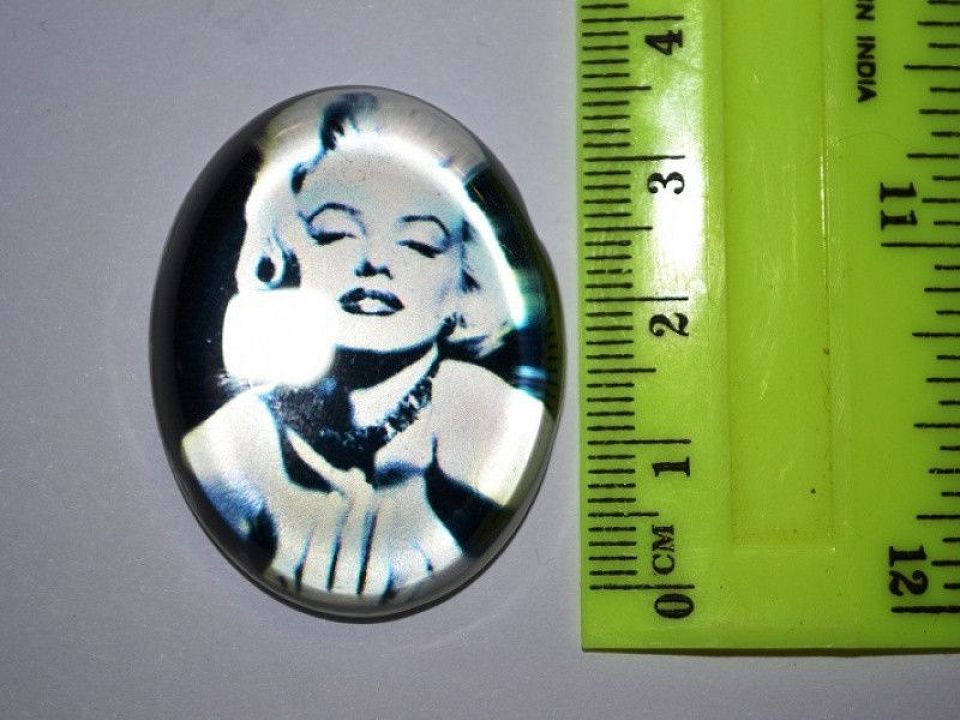 Камея (кабошон) - лінза скляна 35мм * 25мм з зображенням кінозірок, Мерилін Монро. Форма овальна з плоским підставою.
