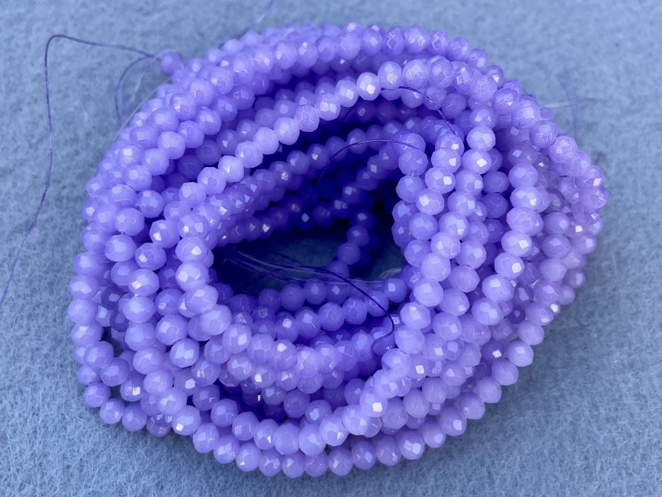 Кришталеві намистини, грановані. Розмір: 4*4,5мм, отвір: 1мм. Форма: рондель, сфера. У нитці: 120+-3шт. Ціна за 1 нитку.