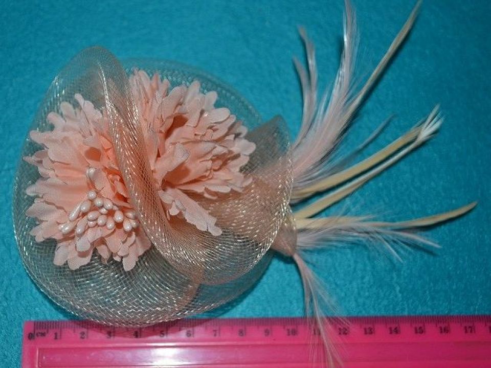 Квітка 2 в 1, з тканини-прикрашений тичинками, пір'ям і регіліном. Діаметр ~ 10-15см. Може використовуватися як шпилька або як брошку. Ціна за 1 шт
