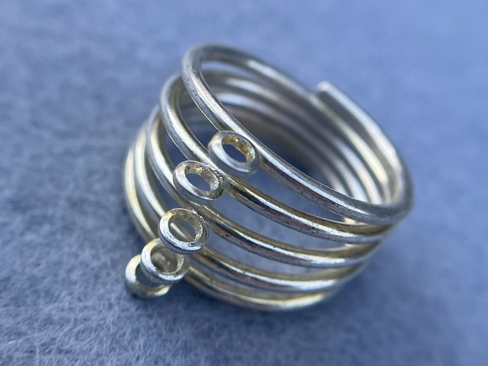 Основа для кільця із металевого сплаву, з 5 петельками. Діаметр кільця: 17мм. Колір: срібло, ціна за 1шт.