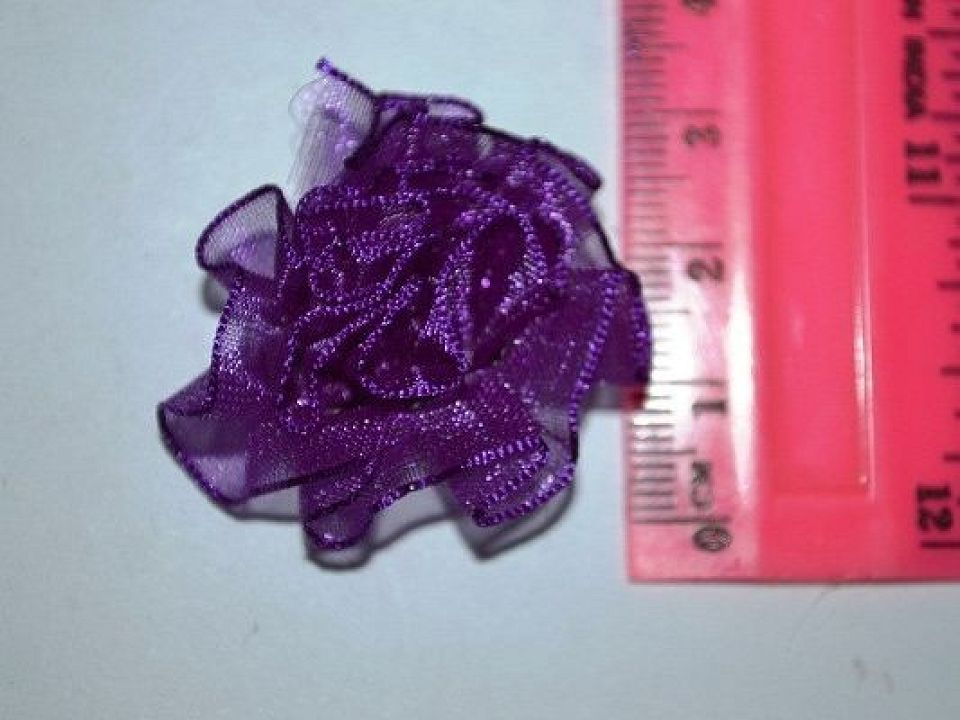 Квітка з органзи використовуються для декорування будь-якої вашої роботи. Діаметр квітки 28мм, висота 10-12мм колір фіолетовий упаковка 10шт.