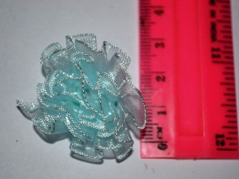 Квітка з органзи використовуються для декорування будь-якої вашої роботи. Діаметр квітки 28мм, висота 10-12мм колір м'ятний упаковка 10шт.