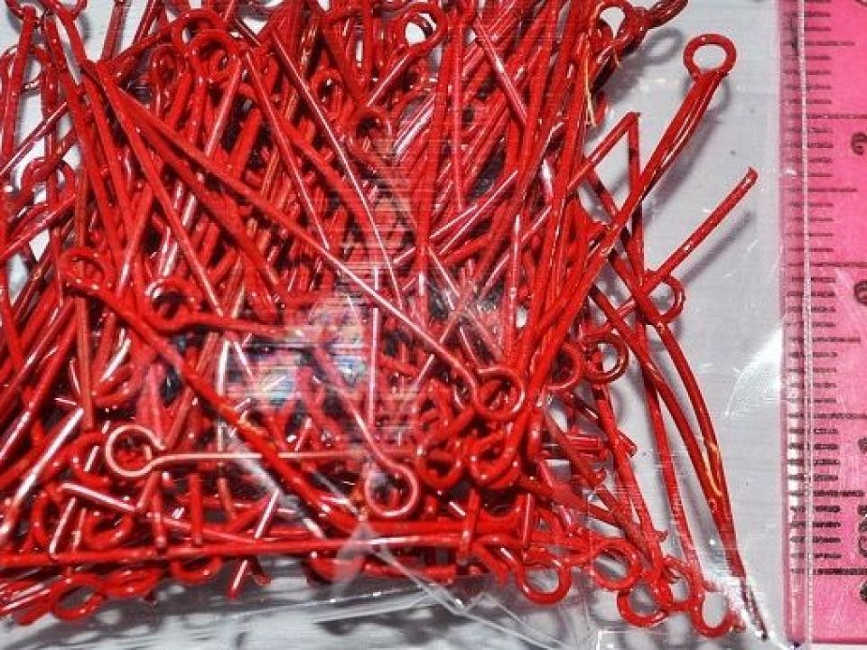 Піни-шпильки (шпильки) 4см, фарбовані для ексклюзивних прикрас. Ціна за упаковку-20 грам. За допомогою шпильок з'єднують між собою намистини, роблять підвіски на браслети, кулони та сережки. Чим довше пін, тим більше по діаметру намистину, на нього можна нанизати, або використовувати відразу кілька намистин.