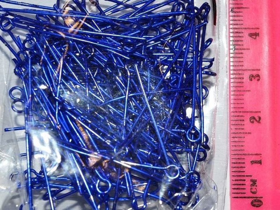 Піни-шпильки (шпильки) 4см, фарбовані для ексклюзивних прикрас. Ціна за упаковку-20 грам. За допомогою шпильок з'єднують між собою намистини, роблять підвіски на браслети, кулони та сережки. Чим довше пін, тим більше по діаметру намистину, на нього можна нанизати, або використовувати відразу кілька намистин.
