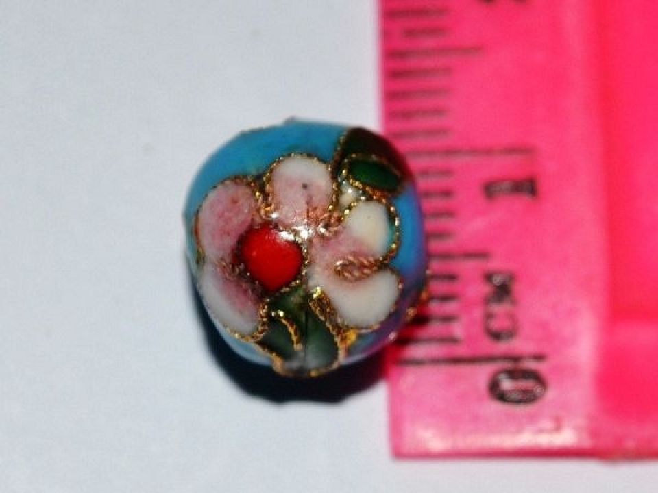 Намистина металева виготовлена в техніці Клуазоне з елементами емалі. Діаметр 12 мм, отвір близько 2 мм. Ціна за 1 шт