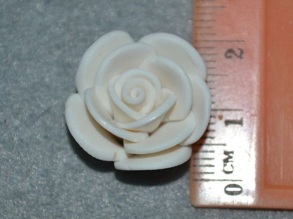 Намистини з полімерної глини. Форма: об'ємна троянда. Розмір намистини 2см, отвір: 1 * 1.5 мм. Ціна вказана за 1 упаковку-15шт. Квітку можна нанизати на основу для браслета або приклеїти на основу для кілець. Так як це намистини ручної роботи, то розмір може варіюватися: -1 мм