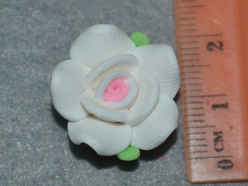 Намистини з полімерної глини. Форма: об'ємна троянда. Розмір намистини 2см, отвір: 1 * 1.5 мм. Ціна вказана за 1 упаковку-15шт. Квітку можна нанизати на основу для браслета або приклеїти на основу для кілець. Так як це намистини ручної роботи, то розмір може варіюватися: -1 мм