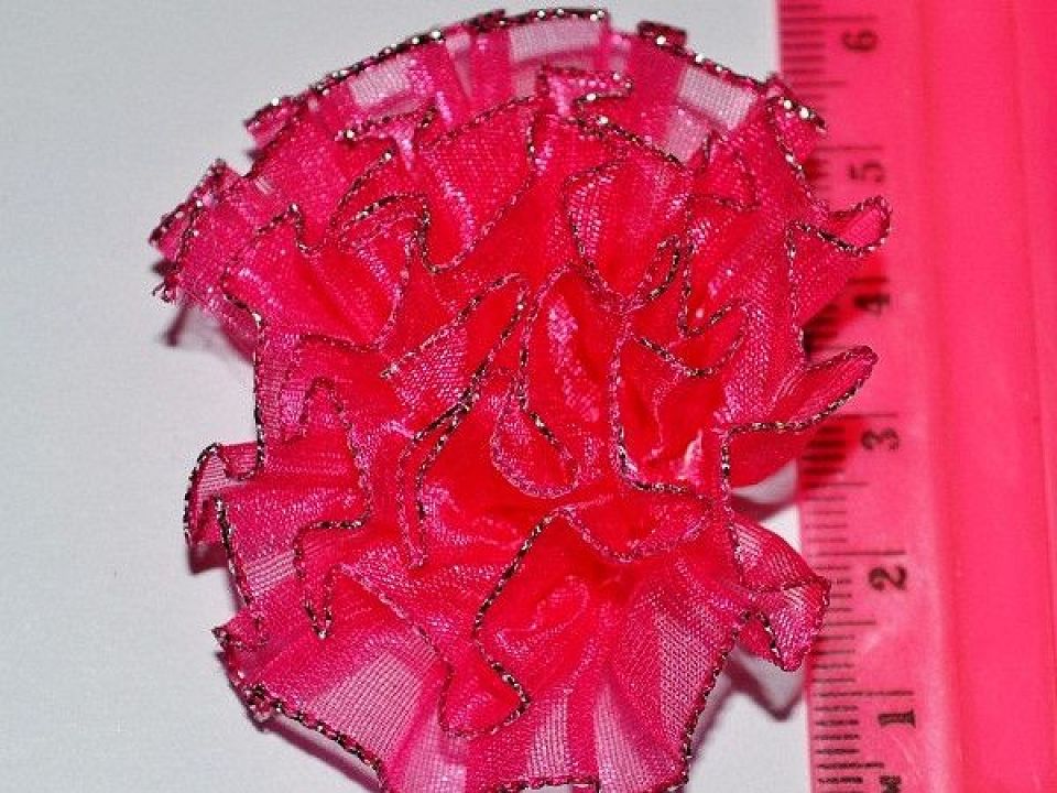 Квітка з органзи використовуються для декорування будь-якої вашої роботи. Діаметр квітки 45мм, висота 12-15мм колір малиновий упаковка 10шт.