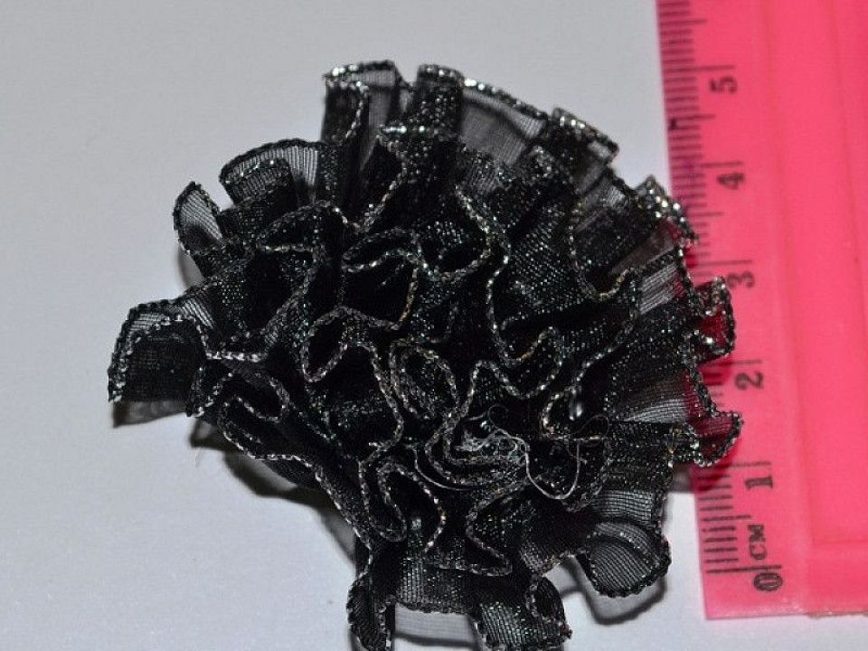 Квітка з органзи використовуються для декорування будь-якої вашої роботи. Діаметр квітки 45мм, висота 12-15мм колір чорний упаковка 10шт.