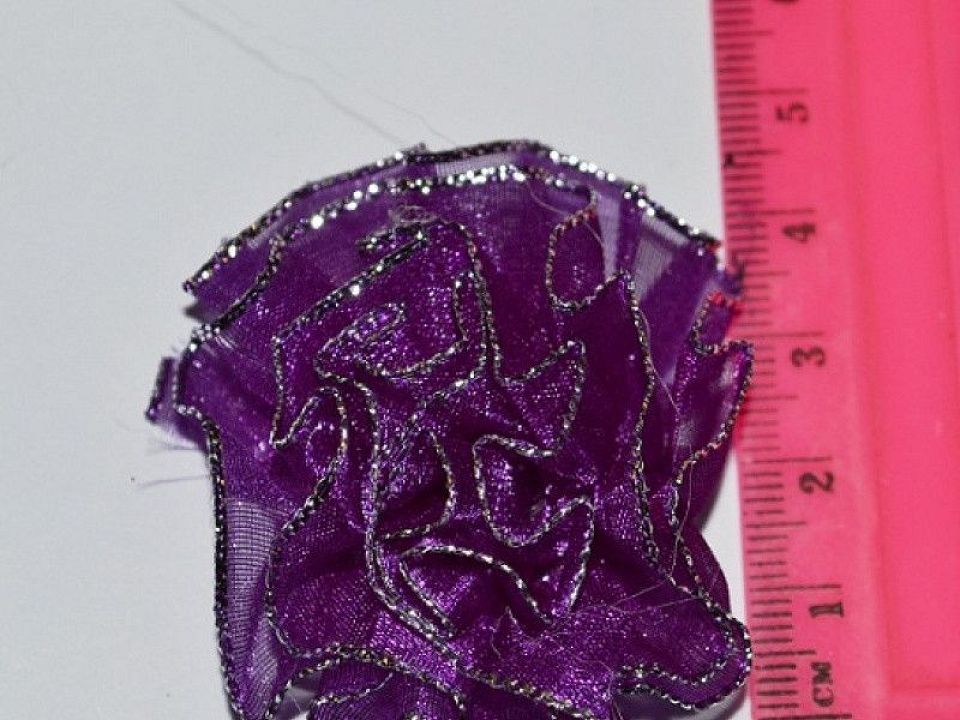 Квітка з органзи використовуються для декорування будь-якої вашої роботи. Діаметр квітки 45мм, висота 12-15мм колір ліловий упаковка 10шт.