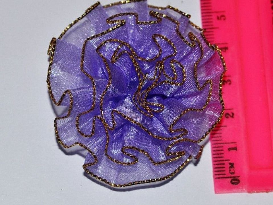 Квітка з органзи використовуються для декорування будь-якої вашої роботи. Діаметр квітки 45мм, висота 12-15мм колір світло фіолетовий упаковка 10шт.