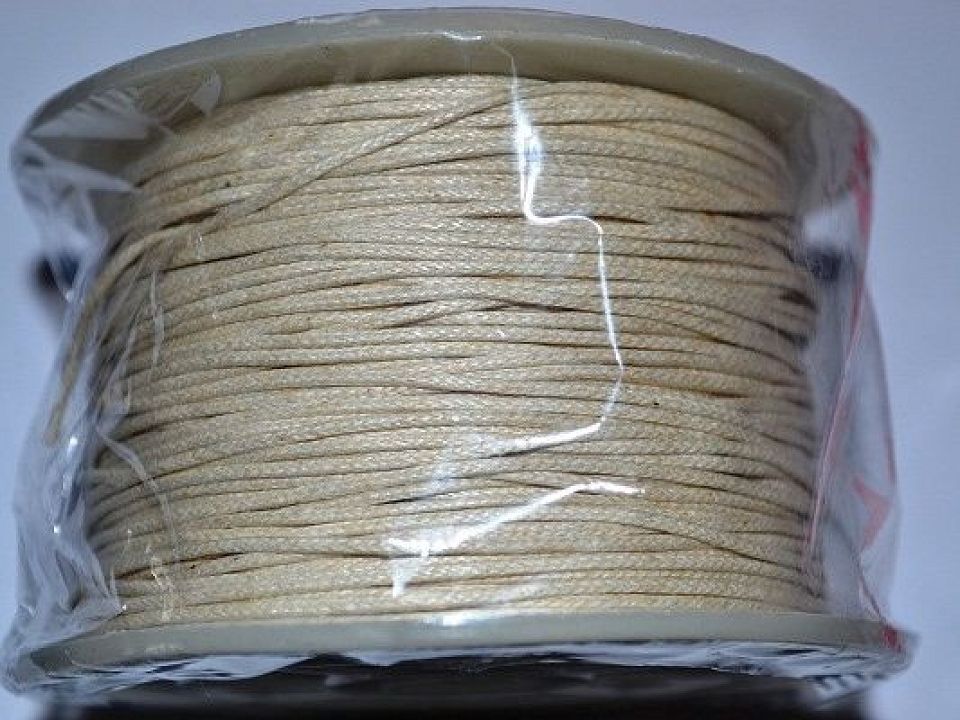 Шнур вощений - це міцний плетений бавовняний шнур, просочений воском для простоти нанизування, але це також робить шнур міцним. Універсальний засіб для складання авторських прикрас, бус, браслетів, брелків. Ціна за бабину-90 метрів. Колір-молочний.