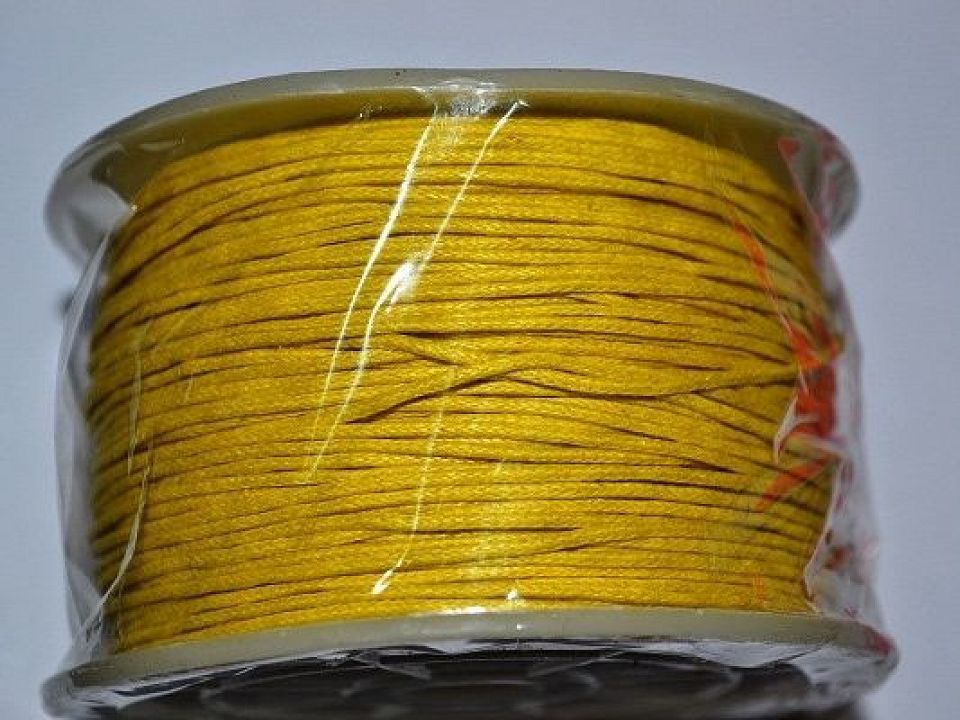 Шнур вощений - це міцний плетений бавовняний шнур, просочений воском для простоти нанизування, але це також робить шнур міцним. Універсальний засіб для складання авторських прикрас, бус, браслетів, брелків. Ціна за бабину-90 метрів. Колір жовтий.