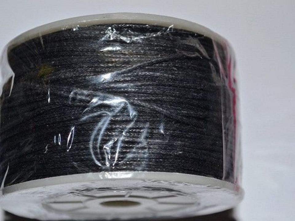 Шнур вощений - це міцний плетений бавовняний шнур, просочений воском для простоти нанизування, але це також робить шнур міцним. Універсальний засіб для складання авторських прикрас, бус, браслетів, брелків. Ціна за бабину-90 метрів. Колір чорний.