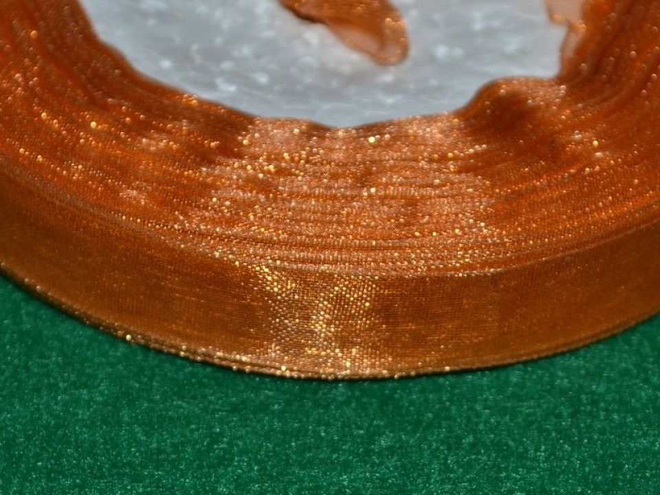 Стрічка з органзи, ширина-1.2см. В мотку-46 метрів. Використовуються при будь-яких видах декорування (при виготовленні сувенірів, ляльок, шпильок, гумок, обручів; при упаковці подарунків) .Ленти з органзи вдають із себе тонкі, трохи жорстким і напівпрозорі тканини смужки.