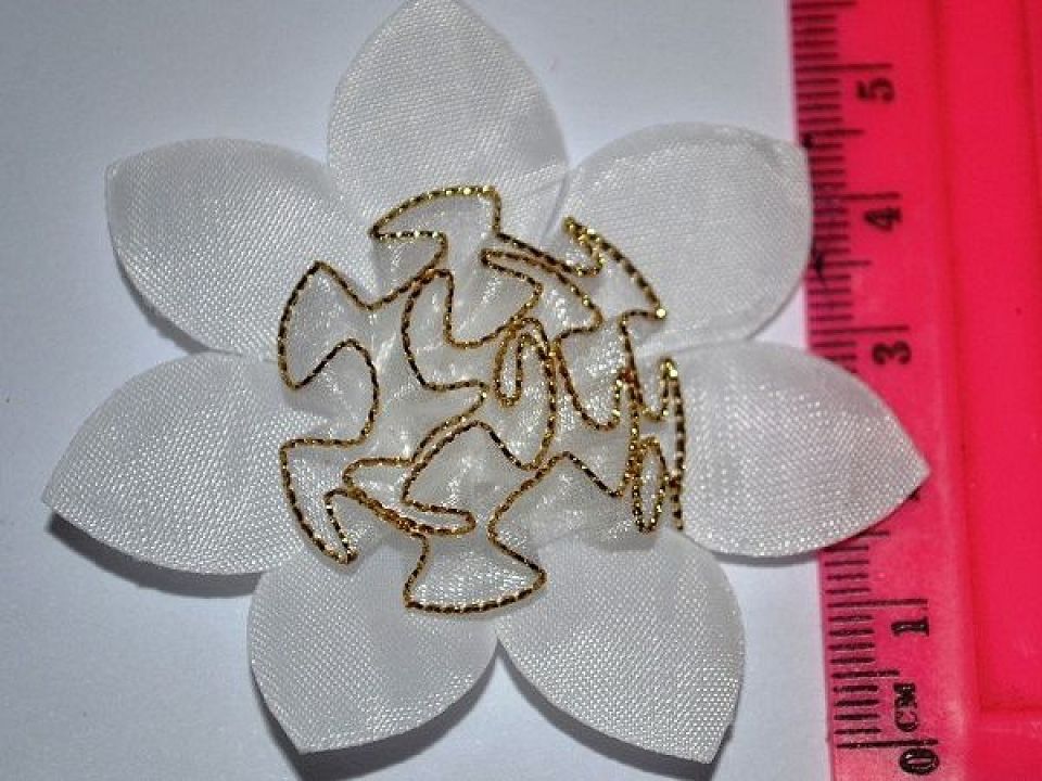 Квітка з органзи з пелюстками використовуються для декорування будь-якої вашої роботи. Діаметр квітки 45мм, висота 12-15мм колір білий упаковка 10шт.