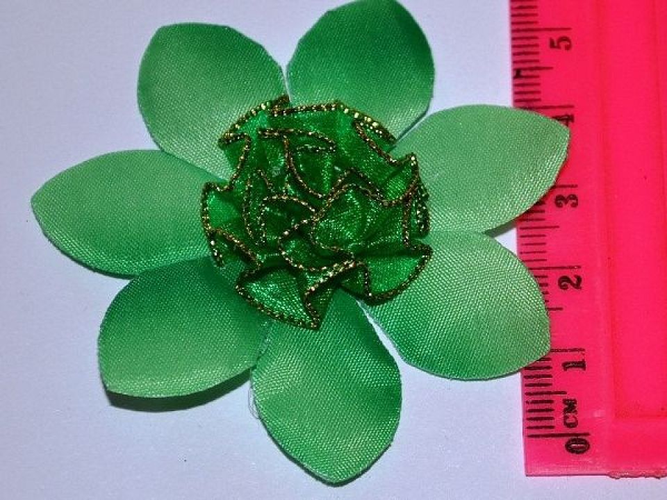 Квітка з органзи з пелюстками використовуються для декорування будь-якої вашої роботи. Діаметр квітки 45мм, висота 12-15мм колір зелений упаковка 10шт.