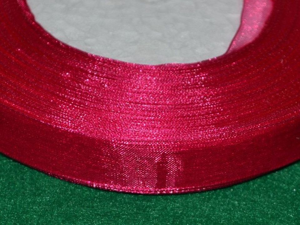 Стрічка з органзи, ширина-1.2см. В мотку-46 метрів. Використовуються при будь-яких видах декорування (при виготовленні сувенірів, ляльок, шпильок, гумок, обручів; при упаковці подарунків) .Ленти з органзи вдають із себе тонкі, трохи жорстким і напівпрозорі тканини смужки.