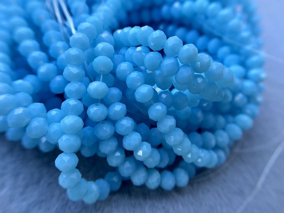 Кришталеві намистини, грановані. Розмір: 4*4,5мм, отвір: 1мм. Форма: рондель, сфера. У нитці: 120+-3шт. Ціна за 1 нитку.