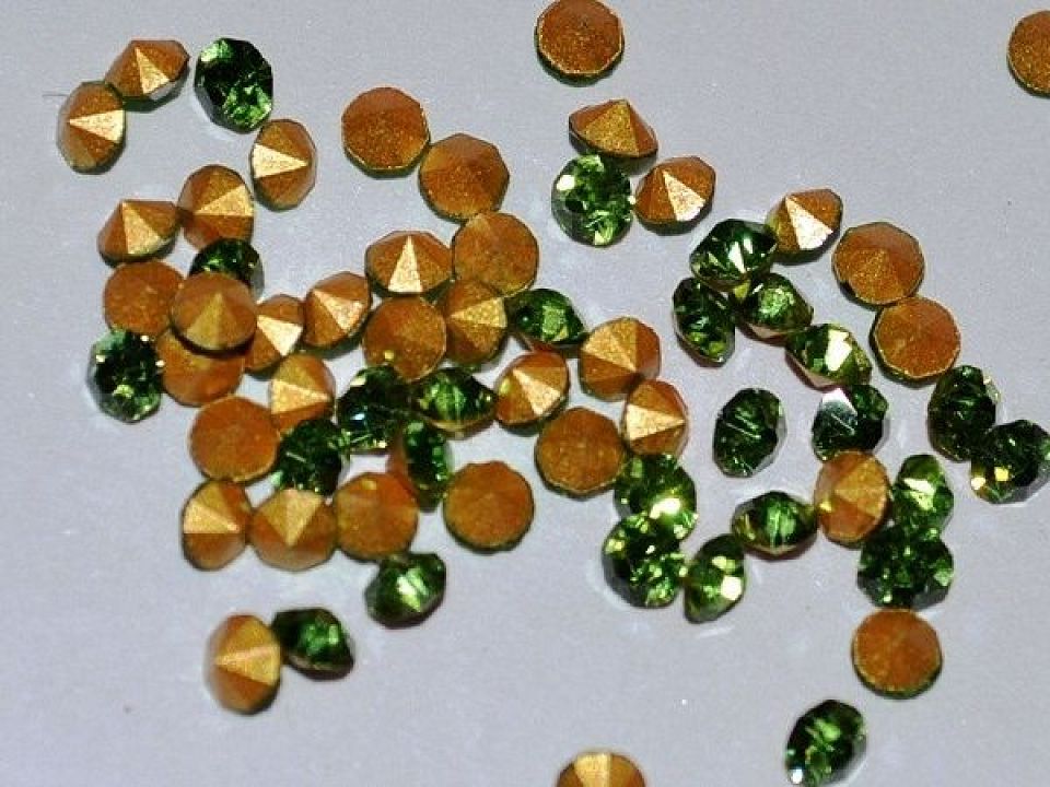 Дно конусних страз має золотисте і шорстке покриття, завдяки чому стрази яскраво виблискують і переливаються.