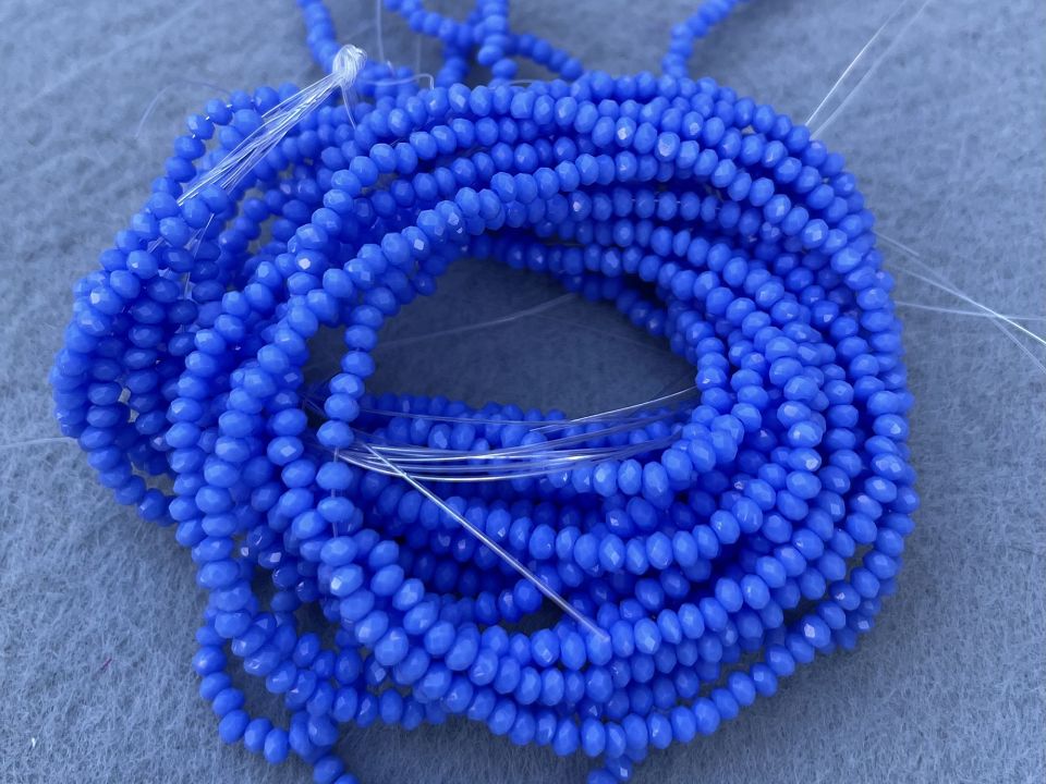 Кришталеві намистини, грановані. Розмір: 1*2мм, отвір: 0,7 мм. Форма: рондель, сфера. У нитці: 165+-3шт. Ціна за 1 нитку.