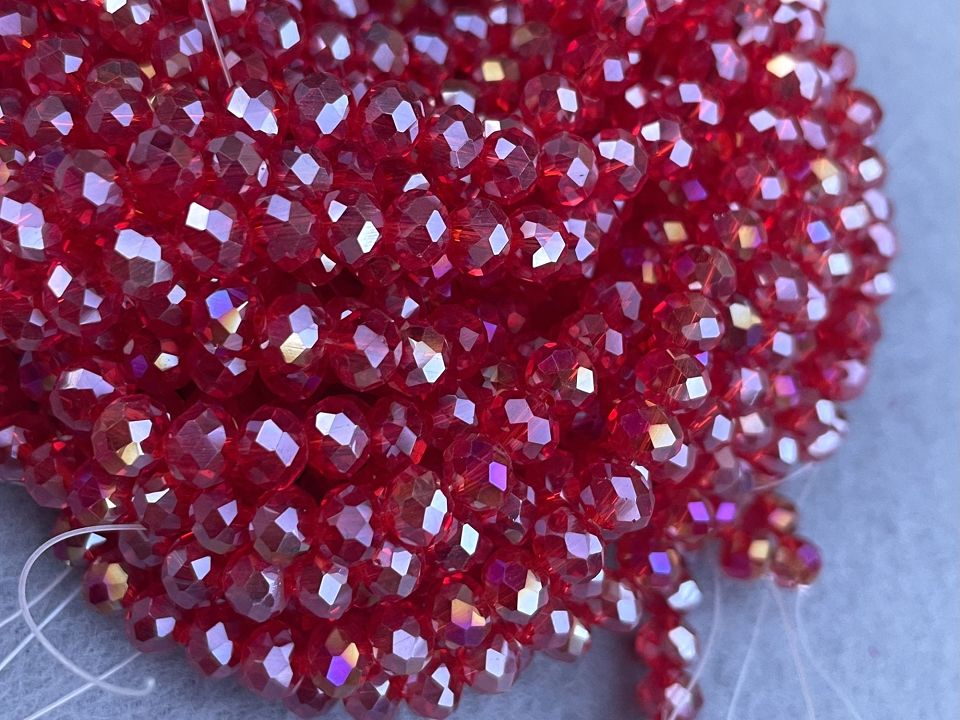 Кришталеві намистини, грановані. Розмір: 6*5мм, отвір: 1мм. Форма: рондель, сфера. У нитці: 90+-3шт. Ціна за 10 ниток.