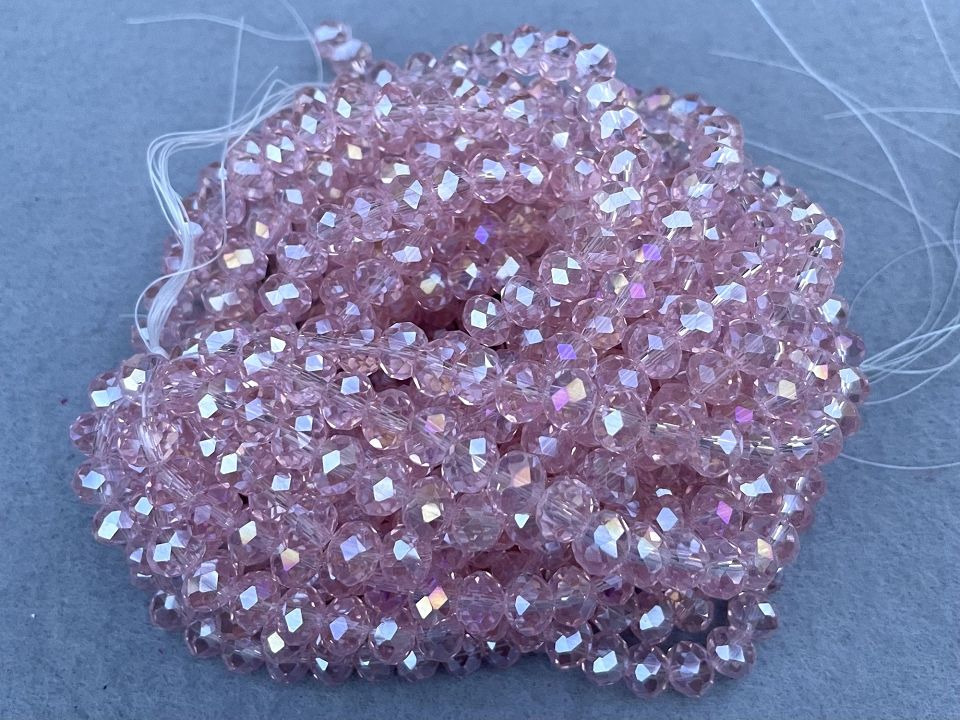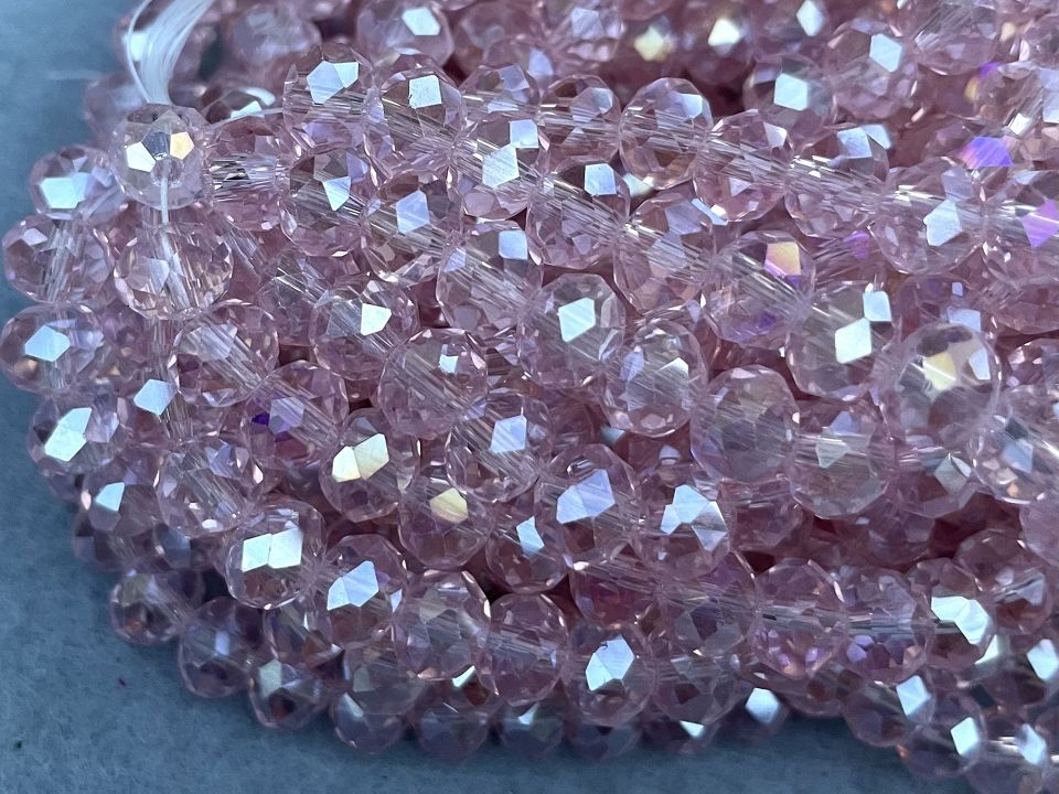 Кришталеві намистини, грановані. Розмір: 8*7мм, отвір: 1,5мм. Форма: рондель, сфера (еліпсоїд). У нитці: 70+-3шт. Ціна за 1 нитку.