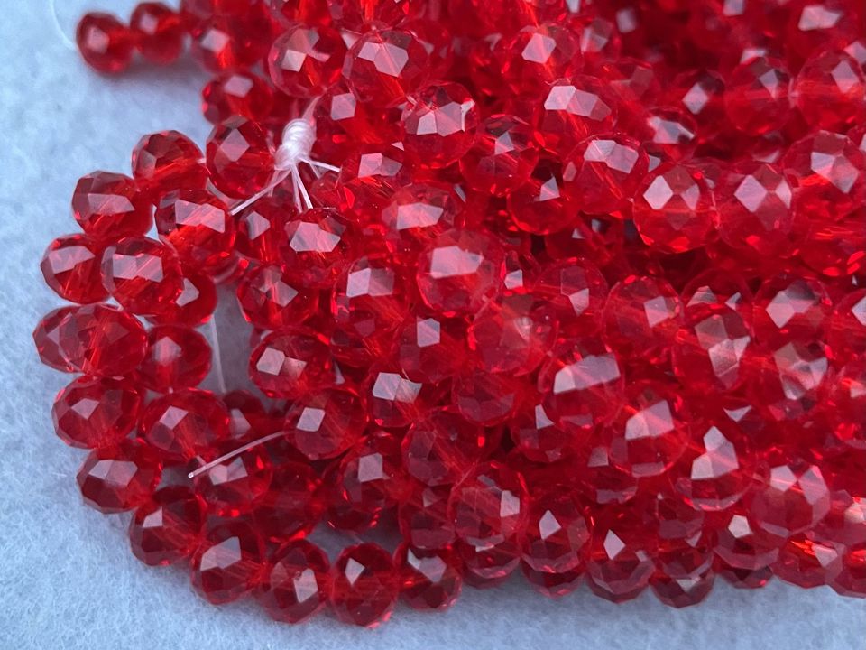 Кришталеві намистини, грановані. Розмір: 8*7мм, отвір: 1,5мм. Форма: рондель, сфера (еліпсоїд). У нитці: 70+-3шт. Ціна за 1 нитку.