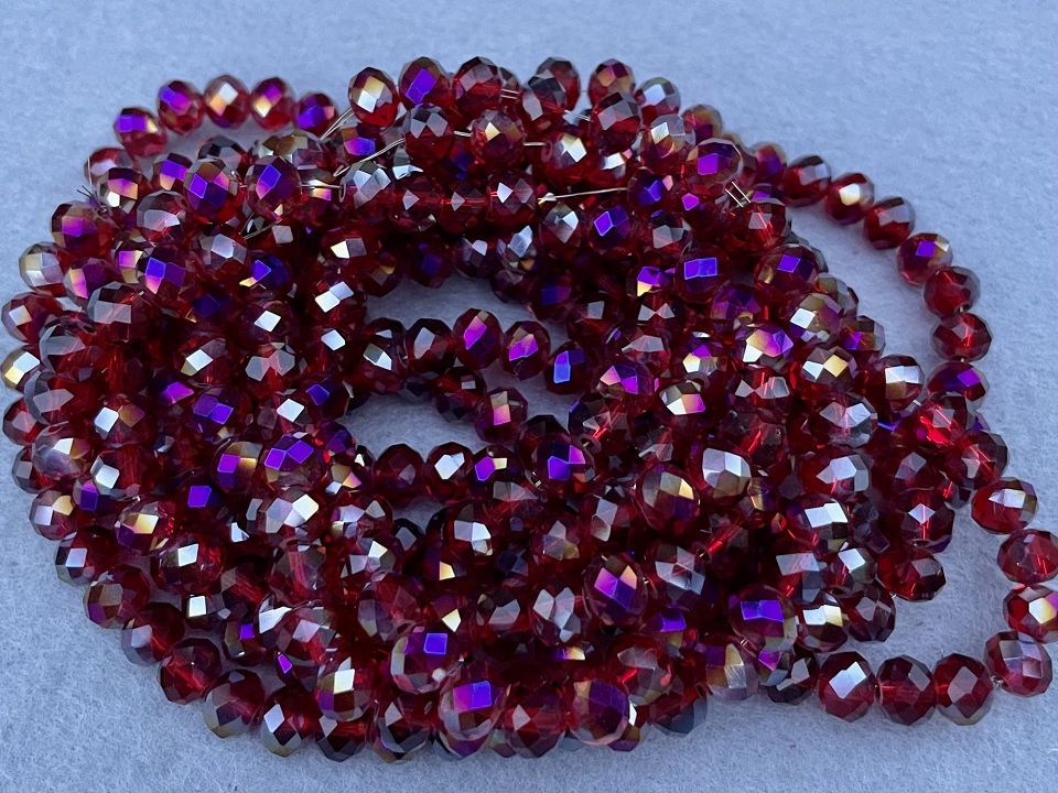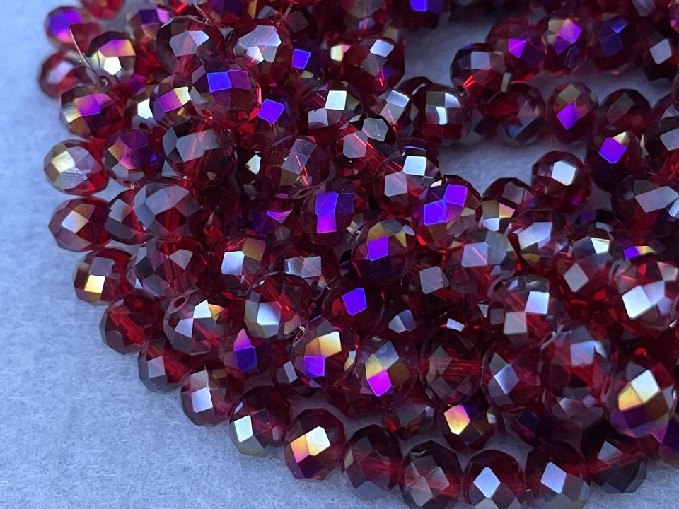 Кришталеві намистини, грановані. Розмір: 8*7мм, отвір: 1,5мм. Форма: рондель, сфера (еліпсоїд). У нитці: 70+-3шт. Ціна за 1 нитку.