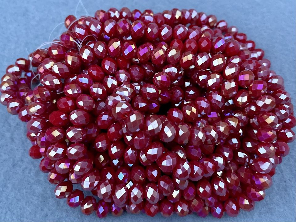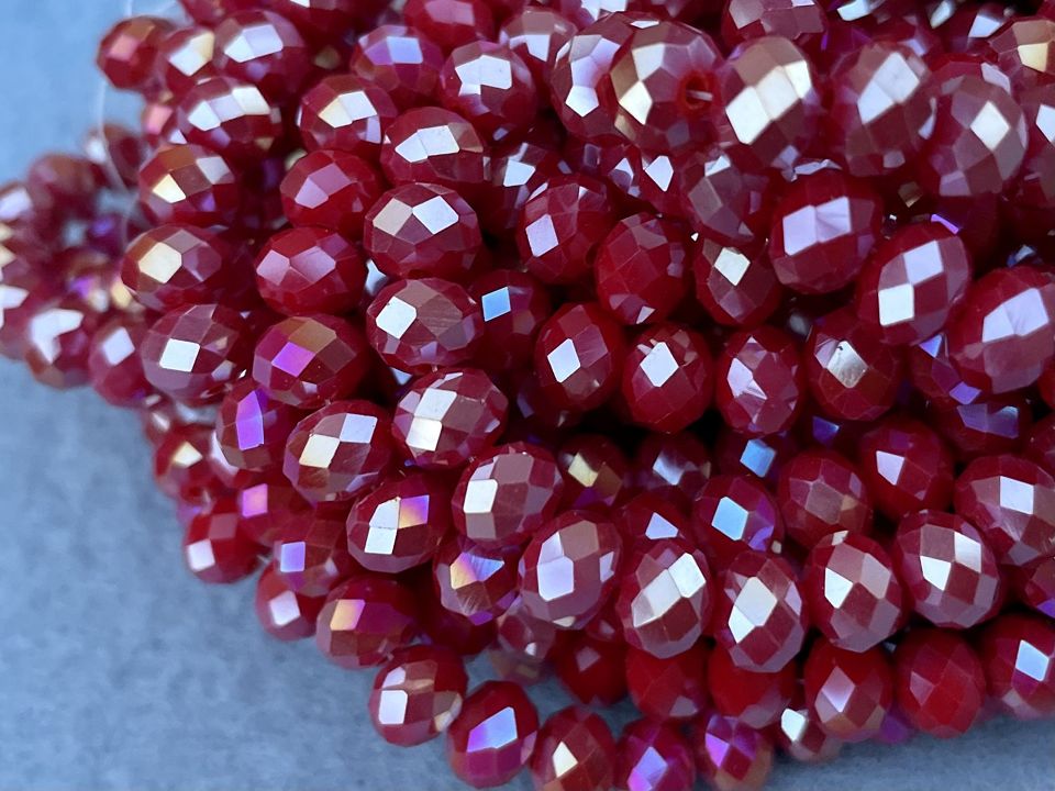 Кришталеві намистини, грановані. Розмір: 8*7мм, отвір: 1,5мм. Форма: рондель, сфера (еліпсоїд). У нитці: 70+-3шт. Ціна за 1 нитку.