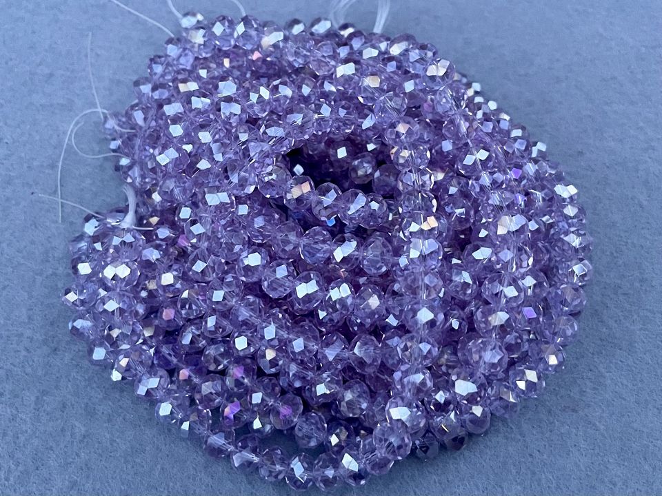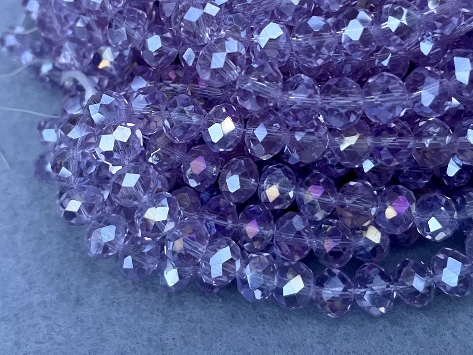 Кришталеві намистини, грановані. Розмір: 8*7мм, отвір: 1,5мм. Форма: рондель, сфера (еліпсоїд). У нитці: 70+-3шт. Ціна за 1 нитку.