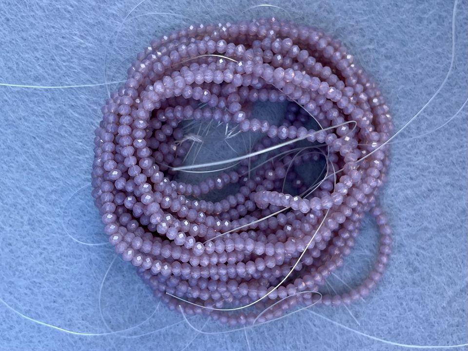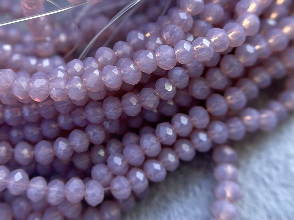 Кришталеві намистини, грановані. Розмір: 2*3мм, отвір: 1 мм. Форма: рондель, сфера. У нитці: 160+-3шт. Ціна за 1 нитку. Колір-запильна троянда-напівпрозорий.