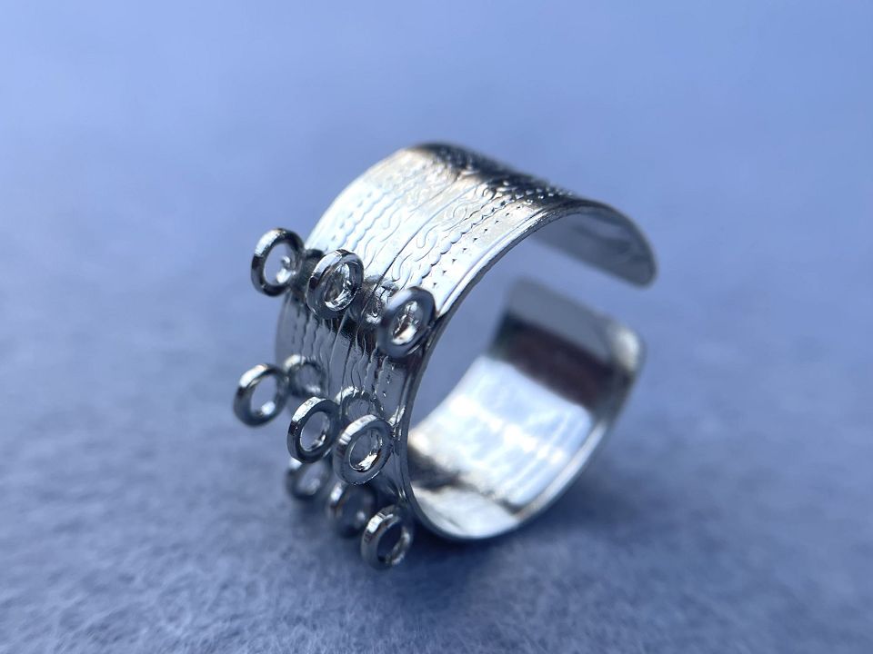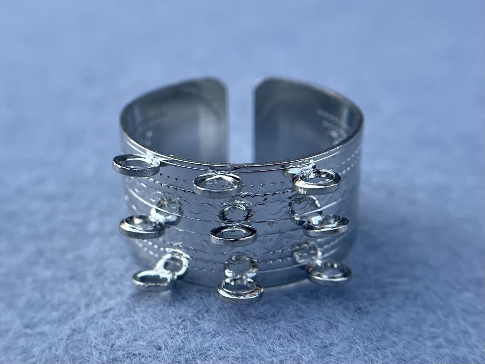 Основа для кільця із металевого сплаву, з 9 петельками. Діаметр кільця: 17мм і збільшується на кілька розмірів. Колір: сталь, ціна за 1шт.