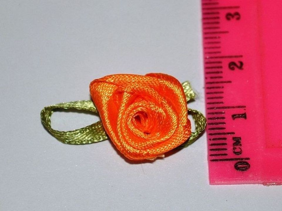 Атласна трояндочка з листочками Розмір: трояндочка - 15 мм, з листочками - 25 мм Колір помаранчевий Упаковка 50 шт