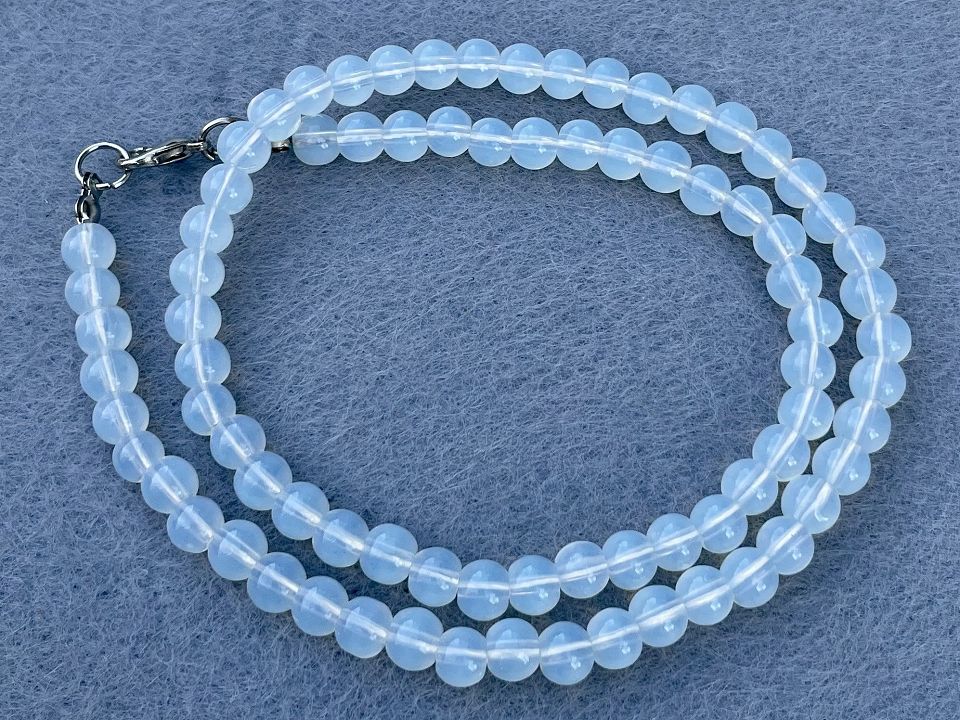 Місячний камінь - пресований, гладкий. Розмір намистини: 6мм. Кількість намистин на нитці: 80 (+-2шт). Отвір каменю: 1мм. Ціна за нитку (із замком). Довжина нитки: 45 см Пресовані камені виходять у результаті обробки шматочків виробів із натурального каменю. Їх подрібнюють на порошок, скріплюють між собою органічними або синтетичними цементами і направляють для подальшої обробки та огранювання у вигляді спресованих брикетів.
