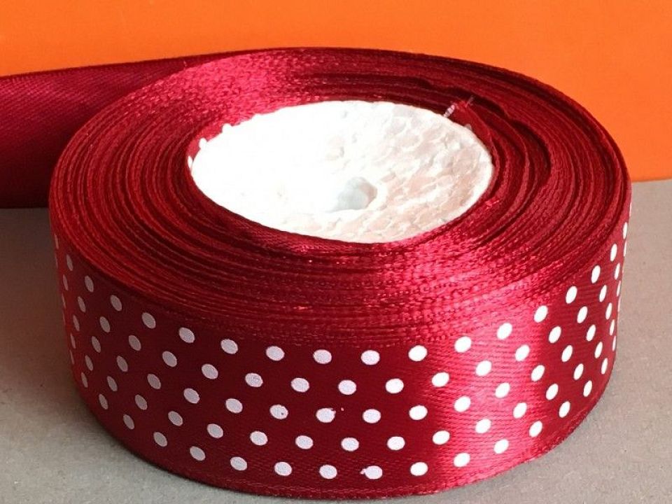 Стрічка атласна в горошок, ширина 2.5см. В мотку ~ 23 метра. Стрічка атласна - це стрічка, яка зроблена атласним переплетенням з віскозного шовку. Зазвичай її застосовують для прикраси, оздоблення одягу, вишивання стрічками, плетіння стрічками і т.д. Ціна вказана за 1 моток. Виробництво - Китай.