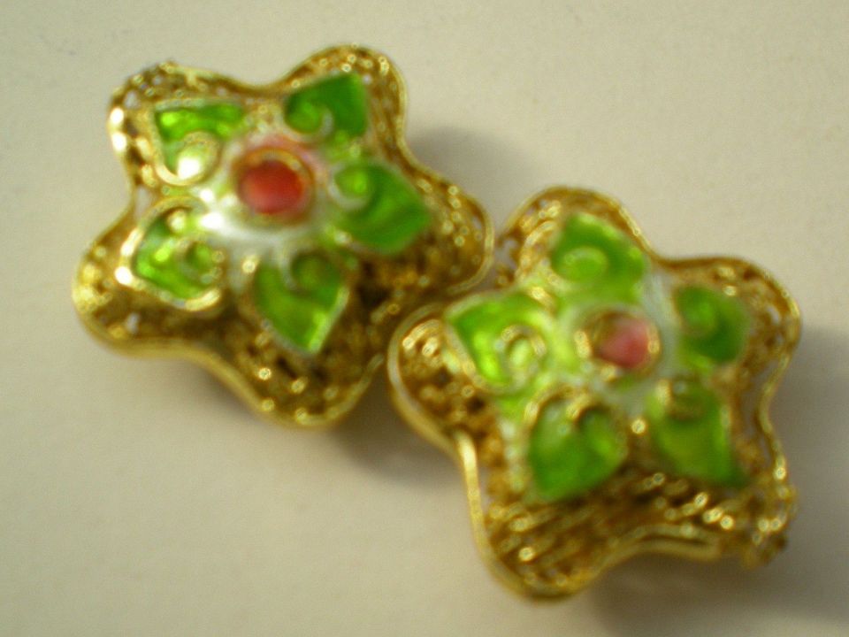 Намистина металева у вигляді квіточки виготовлена в техніці Клуазоне з елементами емалі. Ціна за 1 шт