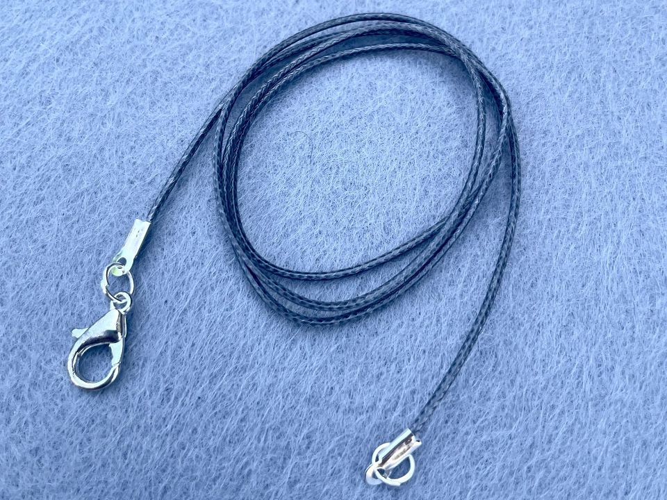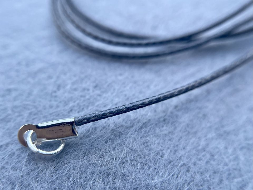 Шнурок на шию для кулонів та підвісок. Зроблений із просоченого вощеного шнура. Діаметр: 1,5 мм. Розмір шнурка: 50-55см. Сірий колір . Ціна за 50 шт.