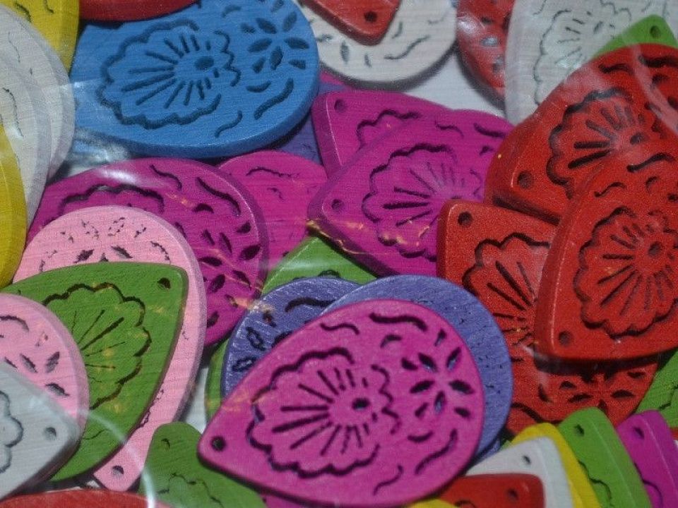 Підвіски дерев'яні пофарбовані. Ціна за упаковку -100 шт. Розмір: 2,5-3 см, товщина: 1,5-2 мм. Колір-асорті. Може використовуватися як підвіски для браслетів, як кулон на шию або для виготовлення сережок. Також можна легко приклеїти або пришити, підійде для декорування речей і скрапбукінгу.