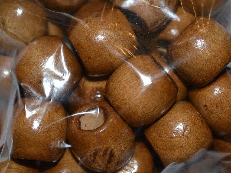 Намистини дерев'яні: циліндричні, покриті лаком. Діаметр намистини: 16мм Діаметр отвору: 5-6мм. Ціна за упаковку: 500 грам. Переваги намистин з дерева в їх натуральності і легкості матеріалу. Діаметр отвору дозволяє їх нанизувати на нитку, дріт або навіть стрічку. З дерев'яних намистин створюють чіткі, різні масажери, застосовуються так само для виготовлення браслетів і бус. Підходять для дитячої творчості та майстер класів, добре для дрібної моторики рук. Розмір намистини і отвір можуть варіюватися +/- 1 мм. Виробництво: Китай.