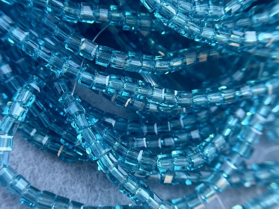 Кришталеві намистини, грановані. Розмір: 2мм, отвір: 0,8мм. Форма кубик. У нитці: 190+-5шт. Ціна за 1 нитку.