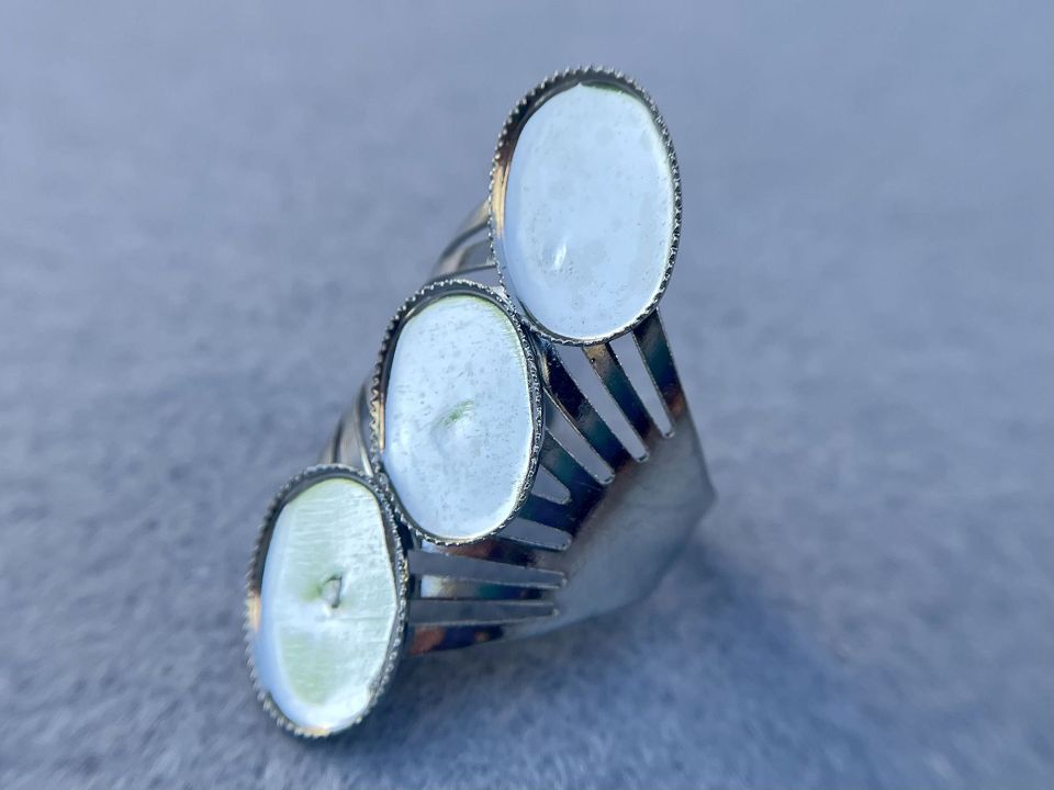 Основа для кільця з металевого сплаву, з 3 основами та бортиком. Основа-10 * 14мм. Діаметр кільця: 17мм і розширюється на пару розмірів. Колір: сталь, ціна за 1шт.