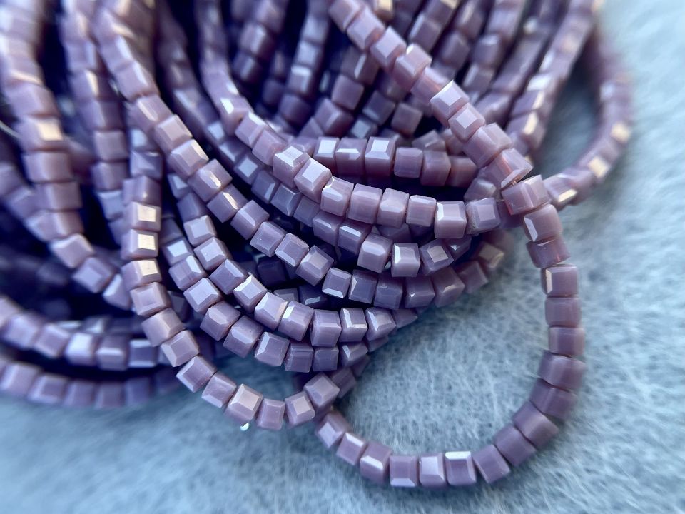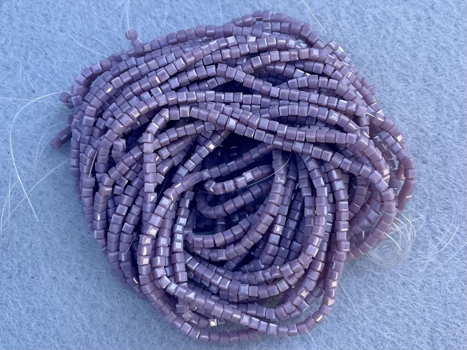 Кришталеві намистини, грановані. Розмір: 2мм, отвір: 0,8мм. Форма кубик. У нитці: 190+-5шт. Ціна за 1 нитку.