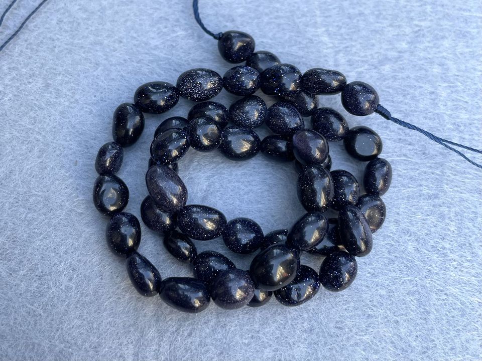 Авантюрін синій. Розмір намистини різні: від 5-7*7-9мм. Кількість намистин на нитці: 48 (+-2шт). Ціна за нитку (без замку). Довжина нитки: 39 см