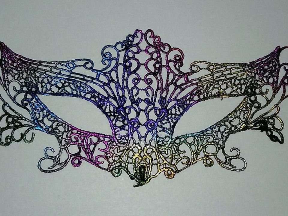 Маска ажурна з м'якого мережива. Колір-чорний з різнобарвним напиленням. Ціна за 1 штуку