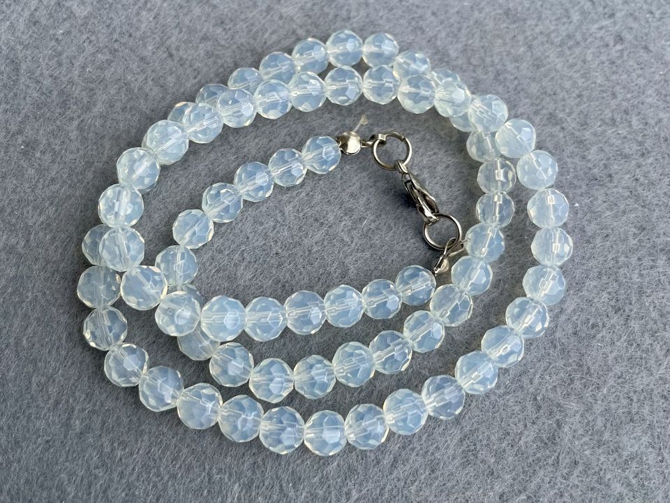 Місячний камінь - пресований, гранований. Розмір намистини: 6мм. Кількість намистин на нитці: 74 (+-2шт). Отвір каменю: 1мм. Ціна за нитку (із замком). Довжина нитки: 45 см