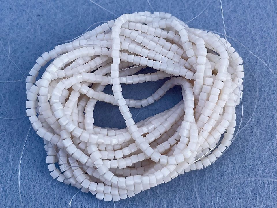 Кришталеві намистини, грановані. Розмір: 2мм, отвір: 0,8мм. Форма кубик. У нитці: 190+-5шт. Ціна за 1 нитку.