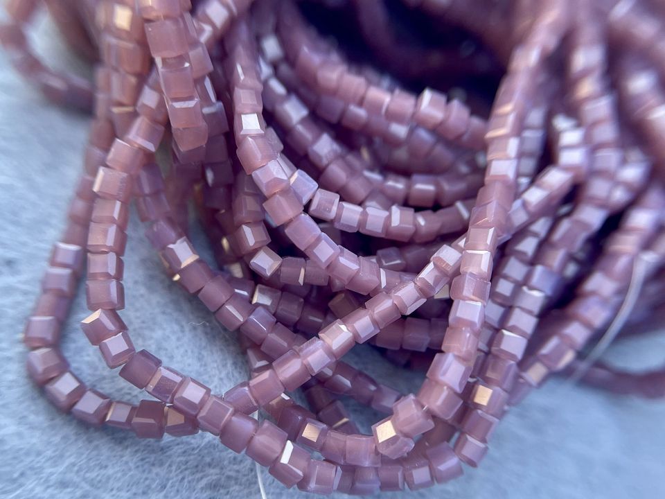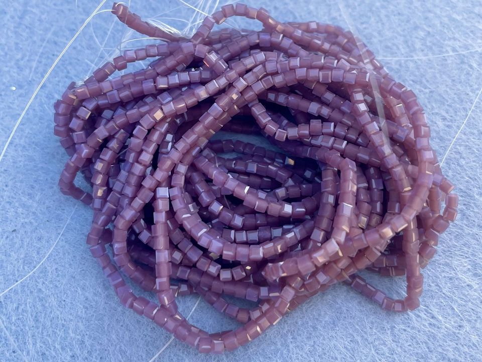 Кришталеві намистини, грановані. Розмір: 2мм, отвір: 0,8мм. Форма кубик. У нитці: 190+-5шт. Ціна за 1 нитку.