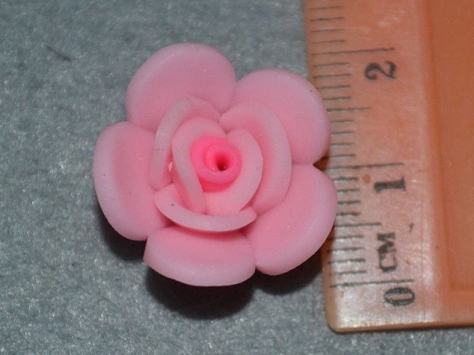 Намистини з полімерної глини. Форма: об'ємна троянда. Розмір намистини 2см, отвір: 1 * 1.5 мм. Ціна вказана за 1 упаковку-15шт. Квітку можна нанизати на основу для браслета або приклеїти на основу для кілець. Так як це намистини ручної роботи, то розмір може варіюватися: -1 мм
